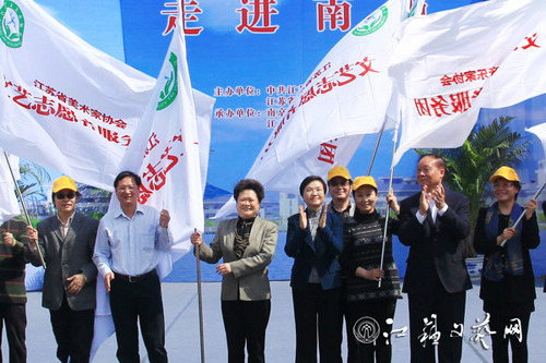 4月12日,江蘇省文藝志愿者服務總隊成立儀式暨文藝惠民活動在南京審計學院舉行。省委常委、省文明委主任、省委宣傳部部長王燕文,省文聯主席王湛,省文聯黨組書記、常務副主席王慧芬,南京審計學院黨委書記、校長王家新,省文聯負責同志楊企鵬、葉飚榮、鄭澤云、丁浩,省委宣傳部相關部門及省文聯各文藝家協會負責人、全省各省轄市文聯負責人、全省文藝家代表、南京審計學院的師生代表出席儀式。省領導王燕文等向文藝志愿者服務總隊總隊長王慧芬及各文藝志愿服務團授旗。王慧芬和王家新分別致辭。楊企鵬宣讀了《關于成立“江蘇省文藝志愿者服務總隊”的決定》。成立儀式由鄭澤云主持。