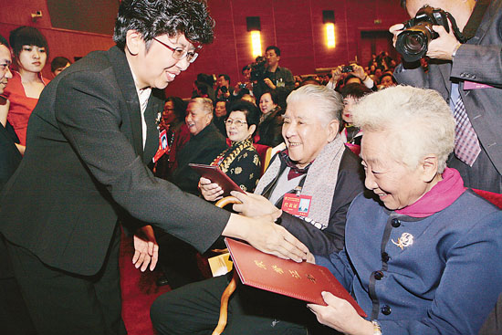 中國文聯(lián)領導為中國文聯(lián)第九屆榮譽委員頒發(fā)榮譽證書、證章[圖]