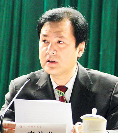 2月15日至16日,2012年全國曲協工作會議在中國文藝家之家舉辦。圖為中國文聯黨組成員、書記處書記李前光在開幕式上講話。