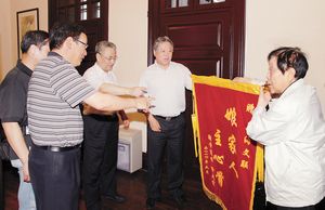 謝晉夫人向上海市文聯贈送錦旗