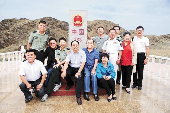 夏潮帶領(lǐng)藝術(shù)家到中蒙邊防哨所慰問,途中在界碑留影 于輝 攝