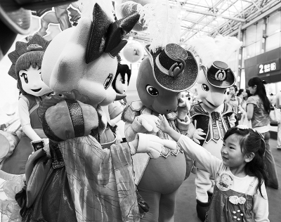 動(dòng)漫展上的卡通人物吸引了小朋友的目光。 CFP