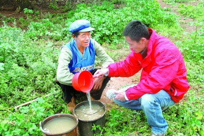 中央人民廣播電臺(tái)記者(右)在貴州省威寧縣迤那鎮(zhèn)大山村采訪。