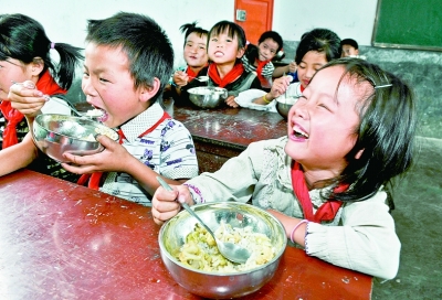 杭州日?qǐng)?bào)報(bào)業(yè)集團(tuán)聯(lián)手貴州日?qǐng)?bào)報(bào)業(yè)集團(tuán),在貴州省普安縣推進(jìn)愛心午餐項(xiàng)目。圖為孩子們?cè)谟貌汀?/font>
