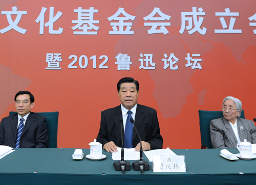 10月26日,魯迅文化基金會成立會議暨2012“魯迅論壇”在北京召開。中共中央政治局常委、全國政協主席賈慶林出席會議并講話。新華社記者 馬占成 攝