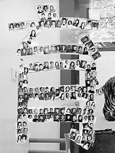 在華盛頓哥倫比亞特區(qū)第一家孔子課堂,學(xué)生們用自己的照片拼成漢字。人民日?qǐng)?bào)記者 張旸攝