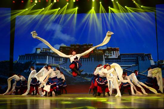 作為晚會(huì)重要元素的舞蹈部分同樣精彩紛呈。由青年舞蹈家黃豆豆帶領(lǐng)四川省少兒舞蹈直通車藝術(shù)團(tuán)的小演員們表演的大型少兒音樂舞蹈詩《紅色少年》片段《紅星照我去戰(zhàn)斗》,激情四溢,振奮人心;第六屆中國(guó)舞蹈“荷花獎(jiǎng)”群舞金獎(jiǎng)節(jié)目《盛裝舞》塑造了蒙古族女性端莊華貴的氣質(zhì);中央民族大學(xué)舞蹈學(xué)院表演的第七屆中國(guó)舞蹈“荷花獎(jiǎng)”民族民間舞比賽群舞金獎(jiǎng)作品《翻身農(nóng)奴把歌唱》,表達(dá)了在黨的領(lǐng)導(dǎo)下西藏百萬農(nóng)奴翻身做主人的真情實(shí)感;曾多次榮獲全國(guó)、全軍多個(gè)創(chuàng)作、表演一等獎(jiǎng)的解放軍藝術(shù)學(xué)院舞蹈系的優(yōu)秀軍旅舞蹈作品《紅藍(lán)軍》,技巧精湛、氣勢(shì)恢宏,贏得觀眾陣陣掌聲。