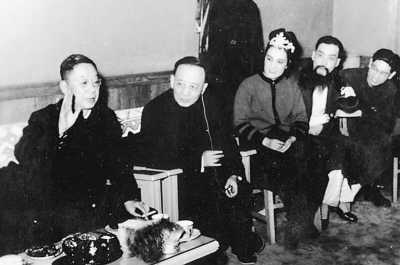 1956年,北京人民藝術劇院上演歷史劇《虎符》時,郭沫若同主要創作人員一起交談。