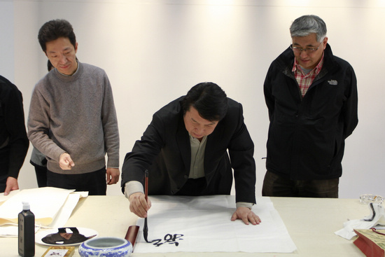 12月26日,中國文聯職工迎新筆會在中國文聯文藝家之家舉行。中國文聯黨組副書記、副主席覃志剛、李屹,中國文聯黨組成員、副主席楊承志、左中一,中國文聯黨組成員、書記處書記李前光出席新春筆會。覃志剛與姜昆、李培雋、陳洪武、邵志軍、吳濤毅等中國文聯干部職工在筆會上揮毫潑墨,創作出多幅慶祝“十八大”勝利閉幕的書法作品。元旦、春節雙節臨近,大家還創作作品抒寫了對新春的寄語。