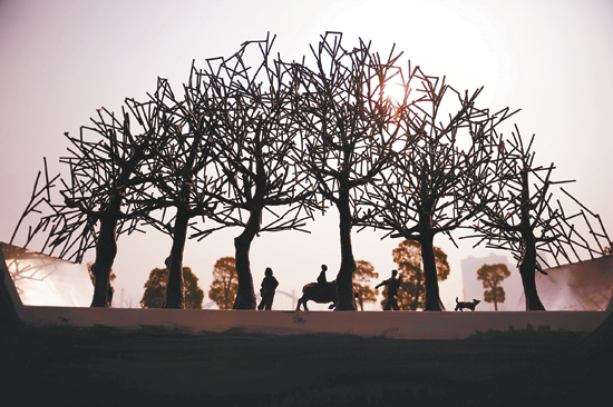12月25日,2012安徽馬鞍山國際鋼雕作品藝術展展出。參展的12件鋼雕展品由主辦方從來自36個國家和地區(qū)的640件投稿作品中精選而出,陳列在馬鞍山各景區(qū)。圖為在展覽上拍攝的“家園”鋼雕作品。