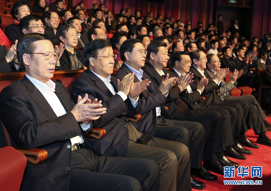 12月30日晚,2013年新年京劇晚會在北京國家大劇院舉行。黨和國家領(lǐng)導人習近平、李克強、張德江、俞正聲、劉云山、王岐山、張高麗,與首都近千名群眾一起觀看演出,喜迎新年的到來。新華社記者 丁林 攝