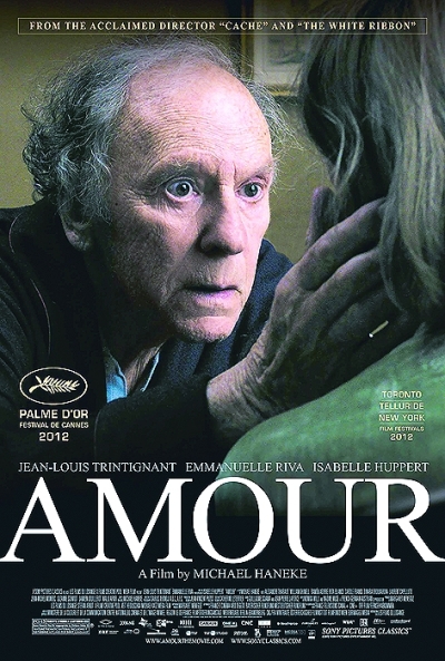 與之走相反道路的則是一舉斬獲2012年戛納金棕櫚大獎的《愛》。固定機(jī)位和長鏡頭展現(xiàn)了極致客觀冷靜的視角,緩慢、精確地講述了一個令人無比震撼和心碎的故事。年輕時覺得最浪漫的事就是和“你”一起慢慢變老,而那只是因?yàn)檫€年輕。電影告訴你,真實(shí)的滿是病痛的暮年生活會讓這份浪漫充滿了無奈和絕望。電影的名字是一個簡單到俗氣的字,而殺人和幻象出現(xiàn)的那一幕卻明明讓人覺得,用這個字確實(shí)是匠心獨(dú)運(yùn)。