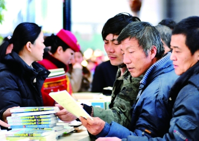 日前,鐵路天津站與天津市新聞出版局在候車大廳聯合開展“文化年貨帶回家”惠民贈書活動。 新華社發 楊寶森攝