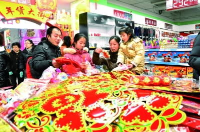 2月6日,山東省淄博市博山區市民在超市購買“年味商品”。李志中、魏其寧攝/光明圖片