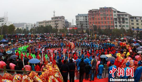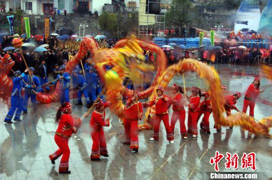 湖南湘西調年會演出:千人擺手舞 村民舞龍燈