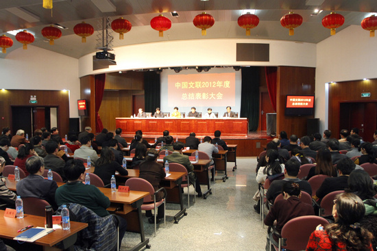 2月25日,中國文聯召開2012年度總結表彰大會,總結2012年的工作,表彰在2012年中表現突出的先進集體和個人,對2013年的工作進行部署并提出要求。大會表彰了集體三等功單位1個,集體嘉獎單位23個,17名同志記三等功,147名同志獲嘉獎,126名同志獲個人表揚,根據有關考核結果確定了9個全國文藝家協會的分黨組為好班子。