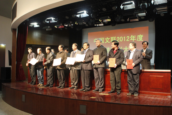 中國文聯黨組書記、副主席趙實,中國文聯黨組副書記、副主席覃志剛、李屹,中國文聯黨組成員、副主席楊承志、左中一,中國文聯黨組成員、書記處書記李前光出席大會并為獲表彰的集體和個人代表頒獎。趙實作了講話。覃志剛宣讀了《中國文聯系統2012年度表彰獎勵情況通報》。大會由李屹主持。