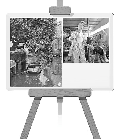 圖②:雕塑家黃河在工作室中創(chuàng)作。
