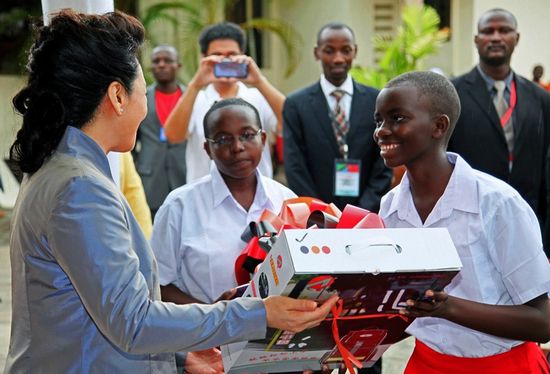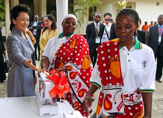 彭麗媛向坦桑尼亞基金會贈送縫紉機和書包[組圖]