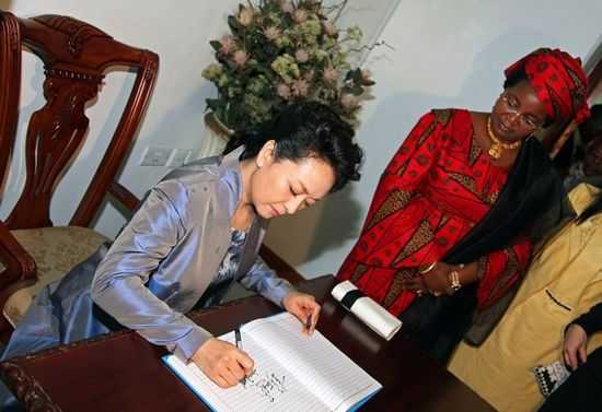 3月22日,坦桑尼亞,彭麗媛在簽名。