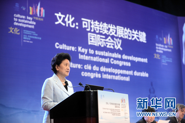 劉延?xùn)|在致辭中指出,當(dāng)今世界正處在大發(fā)展大變革大調(diào)整時(shí)期,文化在國家發(fā)展和人類進(jìn)步中的作用日益凸顯,迫切需要從文化的高度審視傳統(tǒng)發(fā)展理論和發(fā)展道路;文化與經(jīng)濟(jì)、政治、社會(huì)關(guān)系更加緊密,迫切需要文化成為經(jīng)濟(jì)社會(huì)發(fā)展和人的全面發(fā)展的支撐力量;國與國之間相互依存不斷加深,人文交流日趨深入,迫切需要文化發(fā)揮增信釋疑、溝通心靈、深化友誼的獨(dú)特優(yōu)勢(shì)。當(dāng)前,走可持續(xù)發(fā)展道路已成為各國的共同選擇,只有把可持續(xù)發(fā)展的理念凝聚成文化的共識(shí),轉(zhuǎn)化為人們的自覺行動(dòng),世界才能擁有更加美好的未來。她倡議,要尊重文化多樣性和各國自主選擇發(fā)展道路的權(quán)利,在包容中求共識(shí)、在差異中促和諧、在合作中共發(fā)展。要推動(dòng)文化傳承創(chuàng)新,以文化之力塑造人與人、人與社會(huì)、人與自然的和諧關(guān)系,為可持續(xù)發(fā)展提供強(qiáng)勁動(dòng)力。要堅(jiān)持文化創(chuàng)造源自人民、文化價(jià)值在于惠民的理念,優(yōu)化文化發(fā)展環(huán)境,激發(fā)推動(dòng)文化繁榮的生機(jī)與活力,不斷滿足人們精神文化需求。要深化跨文化交流,發(fā)揮文化影響力,共同推動(dòng)和諧世界建設(shè)。中國政府將繼續(xù)把可持續(xù)發(fā)展作為國家的基本戰(zhàn)略之一,堅(jiān)持以人為本、科學(xué)發(fā)展,在努力建設(shè)美麗中國、實(shí)現(xiàn)“中國夢(mèng)”的同時(shí),為人類繁榮進(jìn)步作出應(yīng)有貢獻(xiàn)。