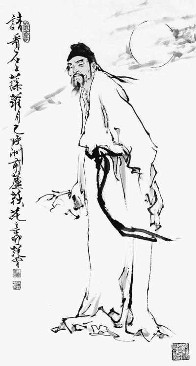 歲月的風輕輕拂過,留下先知先賢的空谷足音。在墨跡斑斑的畫布背后,似乎有無數的身影在躍動,他們長袖舞動,衣袂飄飄,裹挾著數千年的煙云浩渺、風雷激蕩。在這里,剛直不阿的鐘馗、清靜無為的老子、仙風道骨的莊子、高標自持的屈原、建安風骨的曹操、倜儻風流的李白、沉著雄渾的杜甫、慷慨悲涼的蘇東坡、疏淡峻逸的柳宗元、嬉笑怒罵的蒲松齡、豪放不羈的曹雪芹……恍然可見他們倜儻的身影,聽到他們朗朗的笑聲。毫無疑問,范曾在作畫之時,將自己也畫了進去,他忘不了成長中的青春恣肆、苦難中的堅韌不拔,也忘不了狹路相逢的寒霜、華山論劍的雄心。