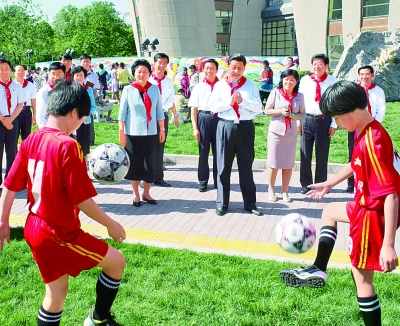 5月29日,中共中央總書(shū)記、國(guó)家主席、中央軍委主席習(xí)近平在北京市少年宮參加“快樂(lè)童年 放飛希望”主題隊(duì)日活動(dòng)。這是習(xí)近平在觀看孩子們練習(xí)足球。