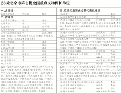 今年,北京市進入第七批國家級文物保護單位的古跡共有28處。昨日,北京市文物局對外公布了第七批國保單位的名單。
