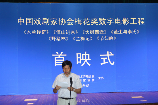 首映式上,中國劇協分黨組書記、駐會副主席季國平向大家介紹了首批梅花獎數字電影工程的具體拍攝情況,白淑賢、馮小寧和國家新聞出版廣電總局電影管理局局長張宏森分別代表參加拍攝的演員、電影界人士和電影局先后致辭。