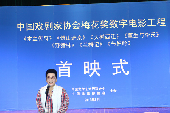 在中國戲劇梅花獎即將喜迎創辦30周年之際,6月6日,由中國文聯和中國劇協策劃、出品并拍攝的首批中國戲劇梅花獎獲獎演員優秀劇目數字電影工程入選影片首映儀式在中國文藝家之家舉行。首映影片包括:龍江劇藝術片《木蘭從軍》、晉劇藝術片《傅山進京》、京劇藝術片《野豬林》《蘭梅記》、秦腔藝術片《大樹西遷》、梨園戲藝術片《董生與李氏》《節婦吟》。