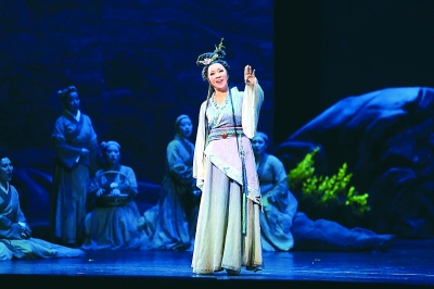 作曲家是歌劇的魂。雷蕾創作的《渴望》《編輯部的故事》《便衣警察》《四世同堂》等作品譜寫出一代中國人的成長旋律,對于作品調性的把握和大眾喜好的了解可謂爐火純青。《西施》的音樂在吸收江南民風的同時,糅合了西方的歌劇語言,通俗易懂,親切好聽。比如劇中多次出現的詠嘆調《綢繆》,借用了《春江花月夜》的元素,旋律如泉水自然流淌般流暢;而《影子之歌》《請你用手指向越國》《春天的鮮花開滿傷痛的祖國》等經典詠嘆更令許多觀眾難忘,在走出劇場時已經能夠輕聲哼唱。
