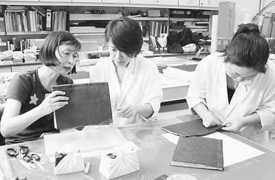 一年多前,陳先生對(duì)文物修復(fù)還一竅不通。現(xiàn)在的他,已經(jīng)能把文物紙本維修的要領(lǐng)講得頭頭是道:“維修文物書冊(cè),要先拆掉書本裝線,逐頁(yè)查看損毀程度,記錄不同損壞,再對(duì)癥下藥。受潮長(zhǎng)毛的紙張,要用化學(xué)棉清潔;紙張裂開(kāi),要用纖維紙粘住;蟲(chóng)蛀的地方,要用同類型的紙逐個(gè)修補(bǔ)蛀洞,這樣才能不露痕跡。”
