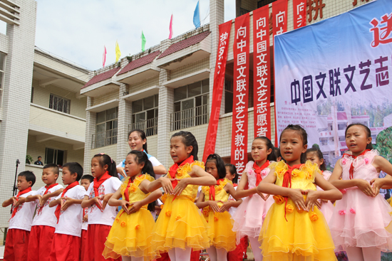 中國文聯文藝志愿服務創新了以往“送歡樂下基層”活動的組織方式和內容,重在“送歡樂、送文化”,并兼顧“種文化”。小分隊一行考察了支教學校,看望了文藝志愿者,并舉行了慰問演出,還向當地學生贈送了文具和攝影作品,更種下了象征希望的“藝術之樹”。聽,音樂班傳出了優美的旋律;看,孩子們的舞姿讓人著迷;瞧,美術班的同學繪出了一幅幅漂亮的作品。曾經當過十幾年教師的歌唱家司紅軍一進校園就感覺非常親切;戴上紅領巾,歌唱家紅旗則想起了自己的少年時代:“和孩子們在一起感受這片土地上的氣息,永葆藝術純真,這是我們共同的收獲。”端詳許久小朋友送的畫,帶隊前來的中國文藝志愿者協會主席、中國曲協主席、中國文學藝術基金會副理事長兼秘書長姜昆感到十分欣慰,他說,藝術名家走進志愿者的隊伍,也是一種學習和激勵,相信隨著文藝志愿服務的廣泛開展,隨著“送歡樂下基層”活動的常態化開展,會有越來越多的文藝工作者投身文藝志愿者行列。