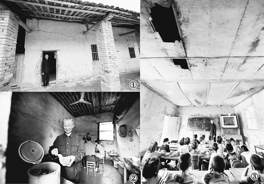 圖①:江西省安遠縣重石鄉官布小學土坯房教室。