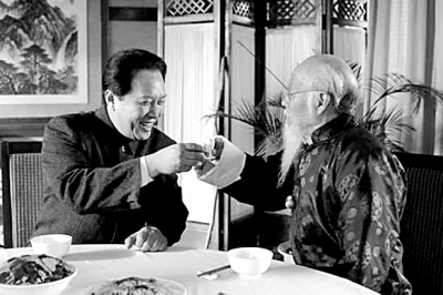 影片《毛澤東與齊白石》從獨特角度再現了1950年前后兩位偉人之間惺惺相惜、富有浪漫色彩的交往,毛主席儒雅的文人氣質和政治領袖風度以及齊白石大藝術家仙風傲骨的氣質都躍然于銀幕上,充滿人情味。影片突出表現了毛澤東對藝術家深厚的情感,對文化事業非同尋常的重視和呵護。同時,也從一個側面凸顯了新中國成立前后那段意義深遠和跌宕起伏的歷史畫卷以及政治清明、人心舒暢、對未來充滿希望和想象的獨特歷史氛圍、文化景觀。從某種意義上說,毛澤東與齊白石的交往不僅僅是他們兩個人的交往,一個政治領袖與一個大畫家的交往,也不僅僅是兩個偉大人物的情感交流、靈魂對話,而是我們黨在新中國成立前后與文化界、藝術界和諧關系的生動體現。這種政治家和文藝家水乳交融、毫無芥蒂的相互尊重,這種充滿人文關懷的情感和友誼,是我們今天實現中國夢所需要的精神力量、情感力量。