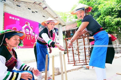 玉溪市新平縣的花腰傣族婦女演示傳統(tǒng)紡織技藝。本報(bào)記者 趙洪波攝