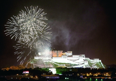 8月6日晚,拉薩市布達(dá)拉宮廣場前燃放起煙花。2013年拉薩“雪頓節(jié)”于8月6日至12日舉行,期間將舉行展佛、藏戲演出等一系列文化活動。新華社記者 張曉華攝