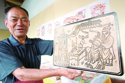 周口年畫傳承人夏明月在雕刻木版年畫模板。 CFP