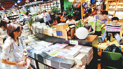 在上海市淮海路上的一家書店內,市民在選購書籍。新華社記者 陳 飛攝