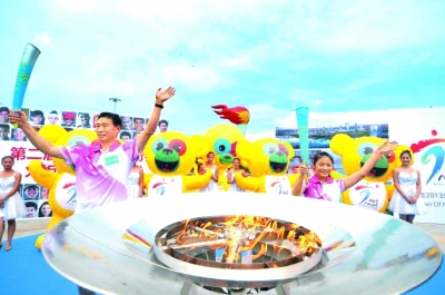 亞青會(huì)火炬在綠博園點(diǎn)燃圣火盆。李響攝
