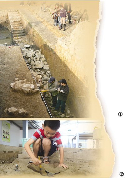 圖②:孩子在丹鳳門遺址博物館進行“考古挖掘”。