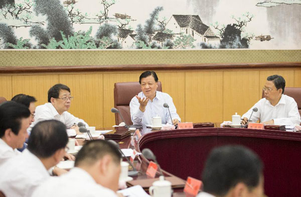 9月13日,中央黨的群眾路線教育實踐活動領導小組在北京召開部分中央督導組工作座談會。中共中央政治局常委、中央黨的群眾路線教育實踐活動領導小組組長劉云山出席會議并講話。新華社記者李學仁攝