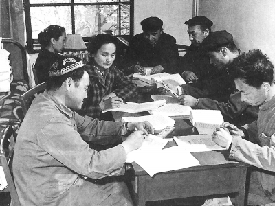 維吾爾文編輯室人員工作的歷史照片。[資料圖片]