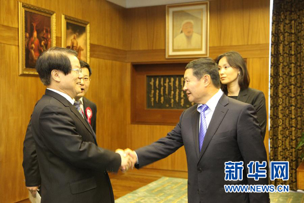 9月25日,中國文化部長蔡武在烏蘭巴托會見蒙古國總理阿勒坦呼亞格。新華社記者王寧攝
