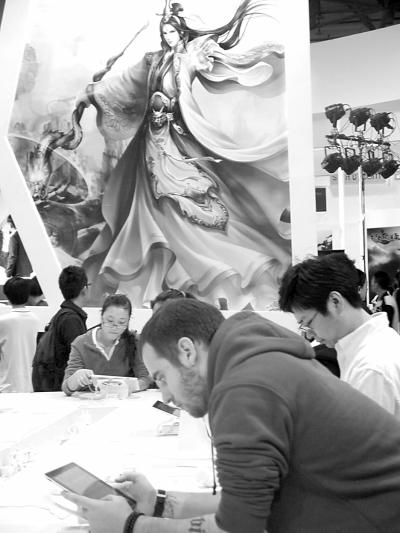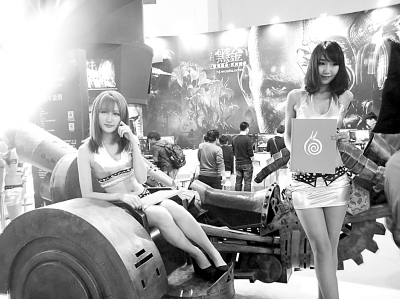 忠實的游戲玩家和靚麗的少女模特構成了第十一屆中國國際網絡文化博覽會的兩道風景。本報記者 張蕾攝