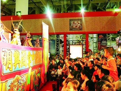 廈門文博會上,臺灣明興閣掌中劇團表演的布袋戲吸引了眾多觀眾。