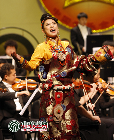 開幕式音樂會(huì)上, 藏族的歌手擁江帆在開幕音樂會(huì)上演唱《跑馬山情思》。張大勇 攝