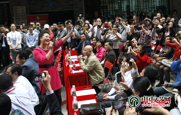 第九屆中國音樂金鐘獎(jiǎng)在廣州開幕。圖為金鐘進(jìn)社區(qū)活動(dòng),金鐘獎(jiǎng)評(píng)委王麗達(dá)在廣州社區(qū)群眾中歌唱。張大勇 攝