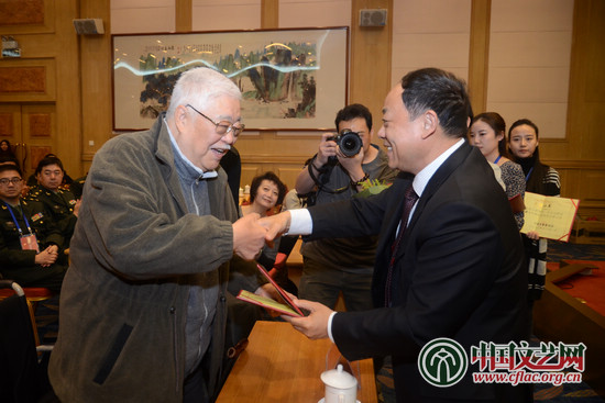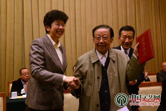 趙實向第九屆中國影協名譽主席謝鐵驪頒發榮譽證書 中國文藝網 單鳴 攝