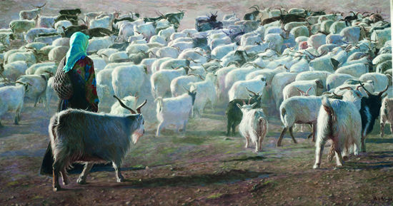 韓玉臣油畫作品《牧羊女》獲法國國家沙龍展金獎 《牧羊女之二》 320×170cm